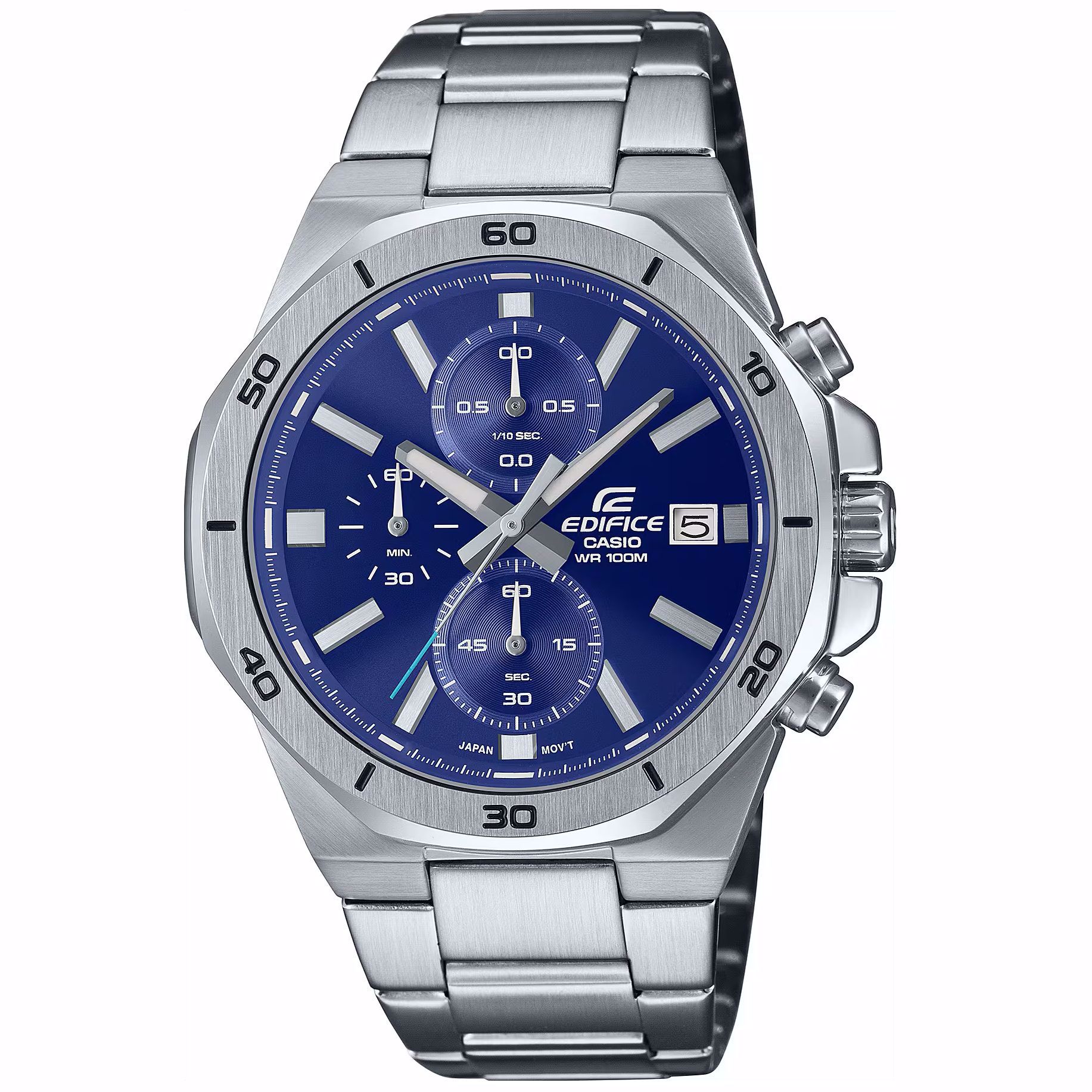 این ساعت مچی مردانه برند کاسیو از سری ساعت های ادیفایس این برند می باشد و دارای بند و بدنه ی استیل با ترکیب رنگهای نقره ای و سرمه ای می باشد. علاوه بر ظاهر شیک از مقاومت بالایی برخوردار بوده و قابلیت ست کردن هم با تیپ کلاسیک و هم تیپ اسپرت را دارد. صفحه ساعت با ترکیب رنگ زیبا و متفاوتش جلوه ی خاصی به ساعت بخشیده. و همچنین این طرح از ساعت کاسیو کرنوگراف بوده و عقربه های کوچک آن کرنومتر هستند و دقت کرنومتر آن 1/10 ثانیه است و دارای نمایشگر روزهای ماه نیز میباشد. جنس بند و بدنه ی این مدل از ساعت کاسیو از استیل 318L بوده که بهترین و با کیفیت ترین نوع استیل و کاملا رنگ ثابت است و اورجینال میباشد و دارای یک سال گارانتی بین المللی است و به همراه پک اورجینال خدمت شما عزیزان ارسال خواهد شد.