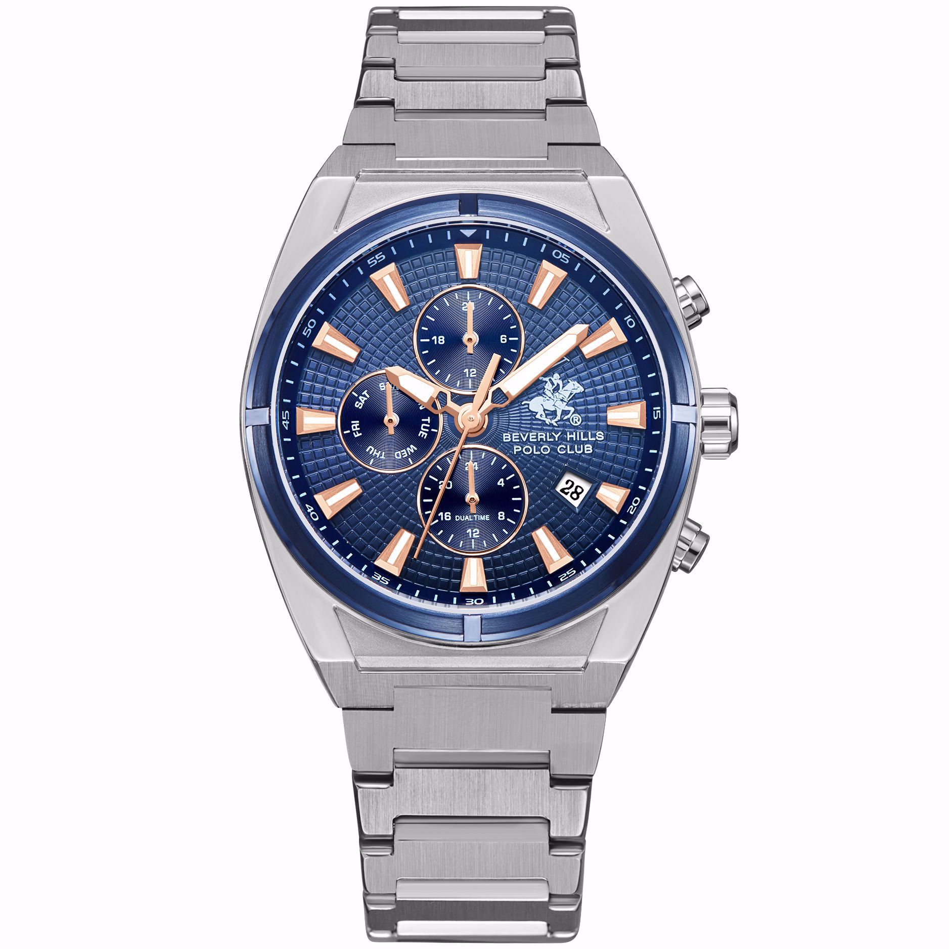 این طرح از برند ساعت پولو بورلی هیلز با طراحی خاص خود برای تیپهای اسپرت و نیمه اسپرت بسیار مناسب میباشد. بند و بدنه ی این ساعت پولو از جنس استیل است و از ترکیب رنگ های نقره ای و سرمه ای و رزگلد در آن استفاده شده. از ویژگیهای منحصر به فرد این ساعت میتوان به طراحی اسپرت ساعت همراه با سه موتوره و یا فول دیت بودن آن اشاره کرد و همچنین طراحی صفحه ی ساعت نیز زیبایی آن را دو چندان میکند. این طرح از برند پولو دارای نمایشگر روزهای ماه و هفته و وضعیت 24 ساعته نیز است. عقربه ی کوچک پایینی ساعت نیز ساعت متفاوتی است که با دکمه های بالا و پایین میشود آن را به ساعت کشور های دیگری تنظیم کرد. عقربه ها و ایندکسهای این ساعت نیز شبنما میباشند. جنس بند و بدنه ی این ساعت از استیل 318L بوده که بهترین نوع استیل است و کاملا رنگ ثابت میباشد. این ساعت پولو اورجینال بوده و با پکیج کامل به همراه دفترچه گارانتی خدمت مشتری ارسال میشود.