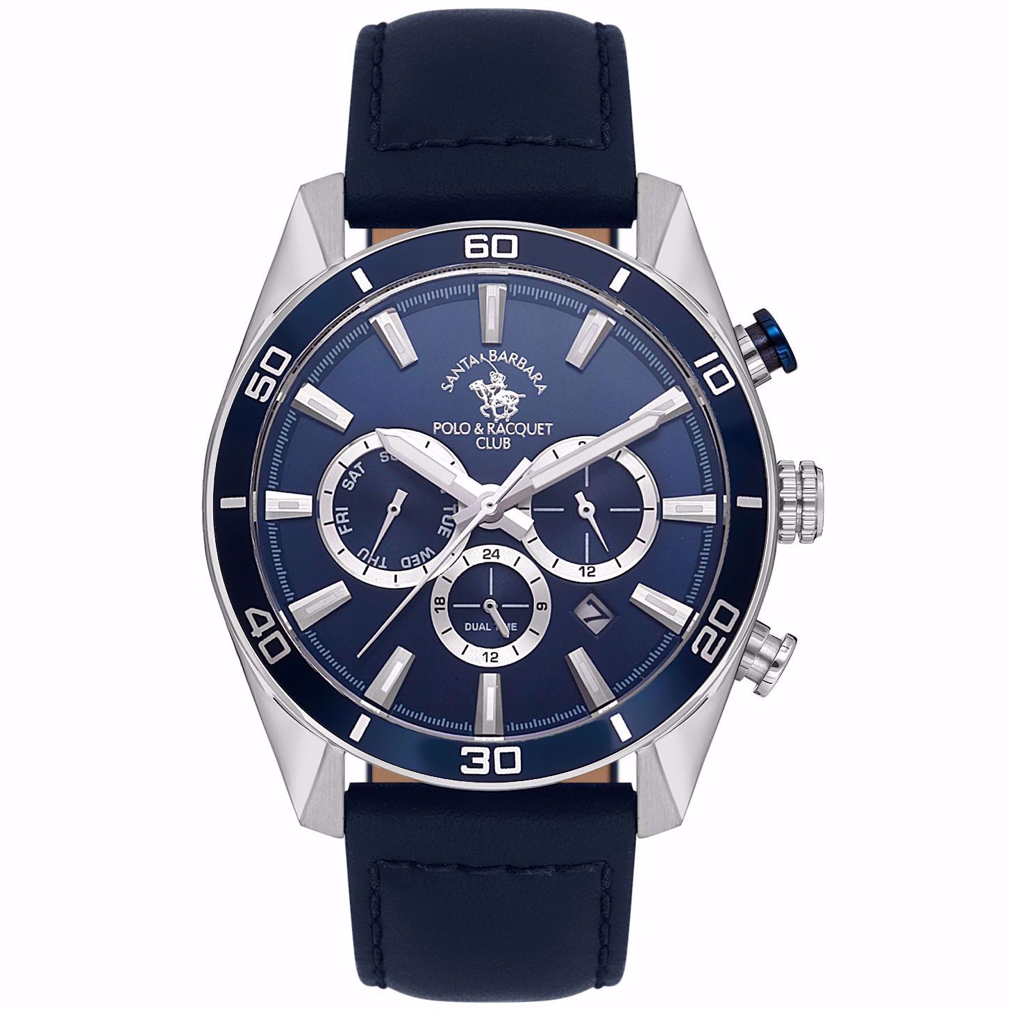 این طرح از برند ساعت پولو سانتا باربارا با طراحی خاص خود برای تیپهای اسپرت و نیمه مجلسی بسیار مناسب میباشد. بند این ساعت پولو از جنس چرم و بدنه ی آن از جنس استیل است و از ترکیب رنگ های سرمه ای و نقره ای در آن استفاده شده است. از ویژگیهای منحصر به فرد این ساعت میتوان به طراحی ساده ی ساعت اشاره کرد که برای تیپهای مجلسی و رسمی بسیار مناسب میباشد و از طرفی نیز سه موتوره بودن آن حالت اسپرتی به ساعت بخشیده است. همچنین این طرح از برند پولو دارای نمایشگر روزهای ماه و هفته و وضعیت 24 ساعته بوده و دو تایمه بوده و دو ساعت را به صورت همزمان نمایش میدهد.