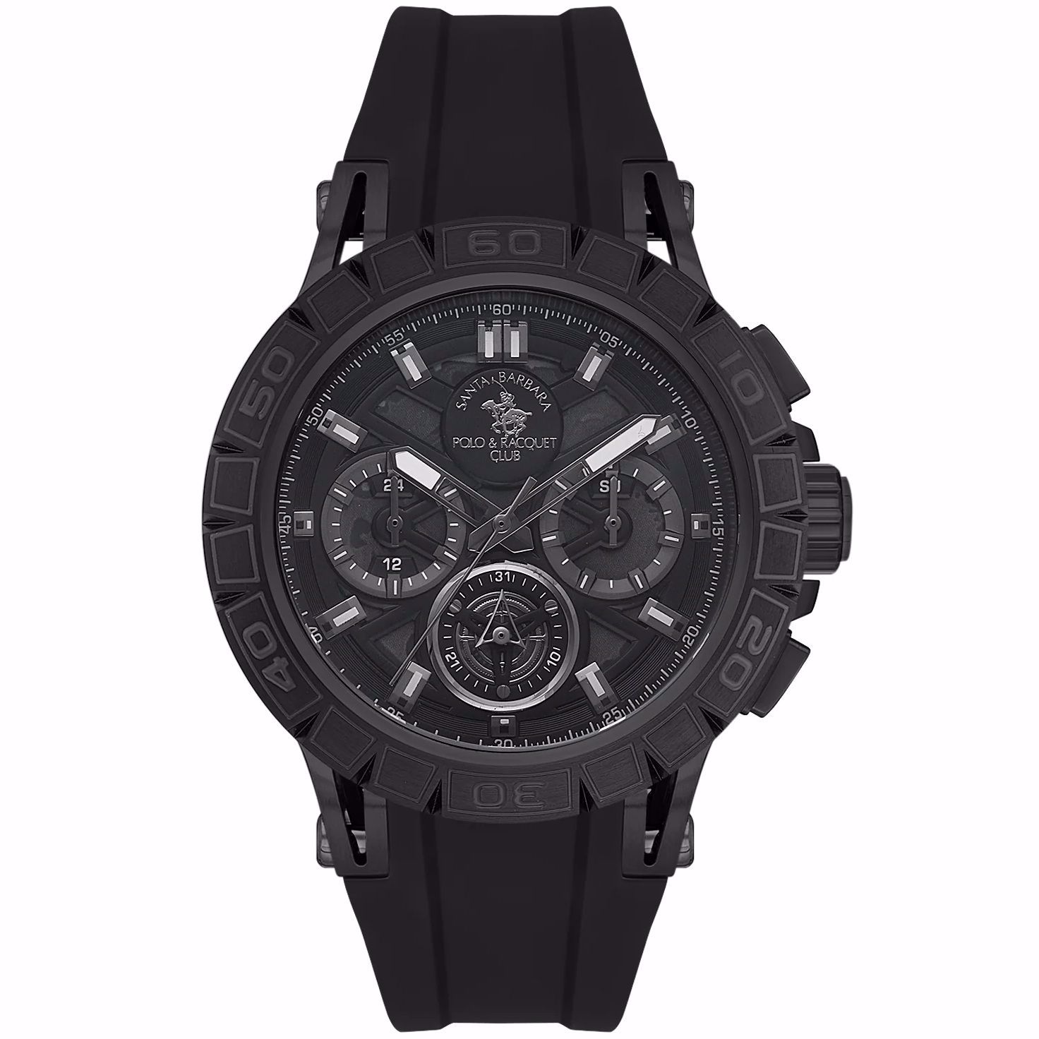این طرح از برند ساعت پولو سانتا باربارا با طراحی خاص خود برای تیپهای اسپرت و نیمه اسپرت بسیار مناسب میباشد. بند این ساعت پولو از جنس رابر یا پلاستیک فشرده و نرم و بدنه ی آن از جنس استیل است و از رنگ مشکی در آن استفاده شده است. از ویژگیهای منحصر به فرد این ساعت میتوان به طراحی زمخت و اسپرت ساعت اشاره کرد که برای تیپهای اسپرت و روزمره بسیار مناسب میباشد و از طرفی نیز سه موتوره بودن آن که حالت اسپرتی به ساعت بخشیده است. همچنین این طرح از برند پولو دارای نمایشگر روزهای ماه و هفته و وضعیت 24 ساعته است. عقربه ها و ایندکس های ساعت نیز کاملا شبنما میباشند و در تاریکی به راحتی قابل خواندن است.